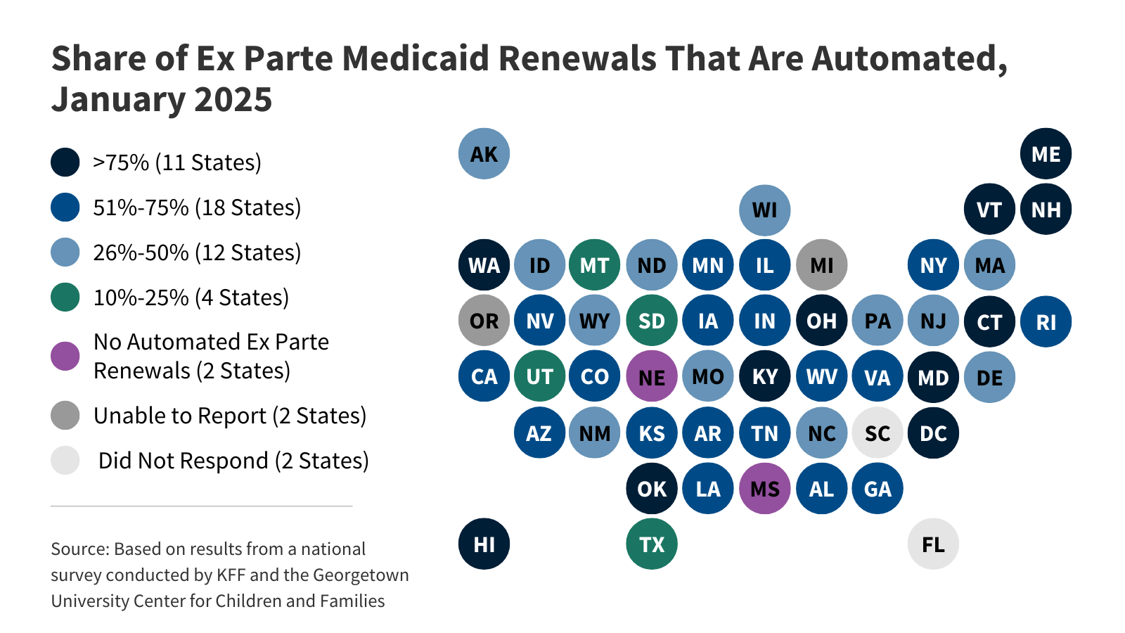 KFF's survey findings capture state actions that seek to improve the accuracy and efficiency of Medicaid and CHIP enrollment and renewal processes, as of January 2025.